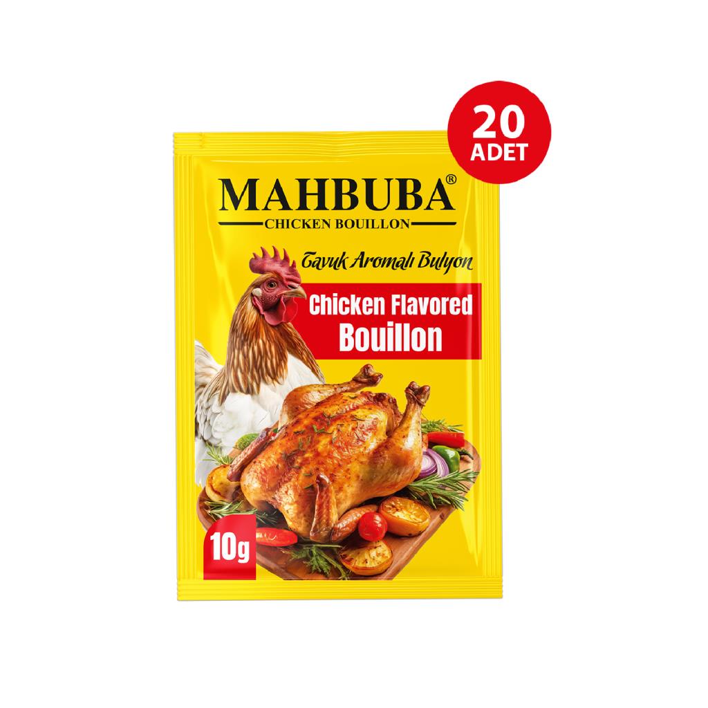 Kullanımı: Mahbuba bulyonu 500mL (2,5 su bardağı) sıcak su içerisine ilave edin, tamamen çözününceye kadar karıştırın. Elde ettiğiniz suyu çorba, pilav ve diğer yemeklerinizin lezzetini artırmak için kullanabilirsiniz. Yemeğinizin tadını kontrol etmeden tuz ilave etmemenizi öneririz.